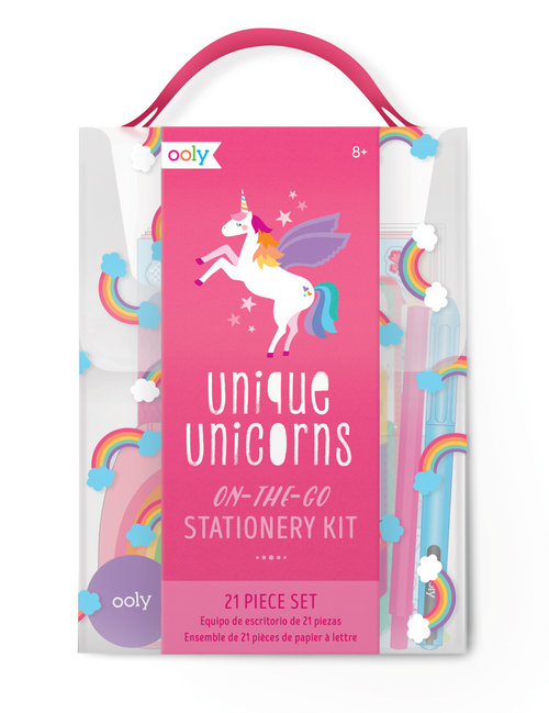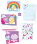 PAPETERIA PODRÓŻNA - Zestaw 21 elementów - Zawiera 8 arkuszy listowych, 4 koperty, 4 pocztówki, notes, ołówek mechaniczny, długopis czterokolorowy, zestaw naklejek i gumkę. - Trwałe opakowanie