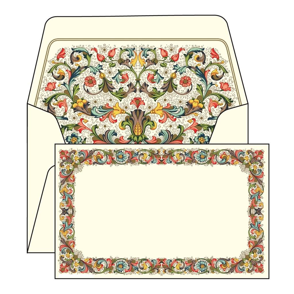 Papeteria w opakowaniu typu Wallet, koperty posiadają zaznaczoną linię, papier o gramaturze 240g/m2. W zestawie znajduje się 6 kopert i 6 karnetów. Produkt z ekskluzywnej galanterii wyprodukowany we włoskiej manufakturze.