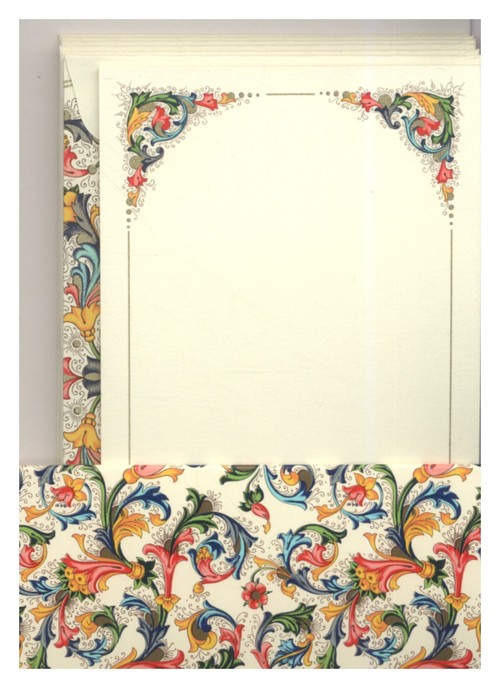 Papeteria w opakowaniu typu Wallet, koperty posiadają zaznaczoną linię, papier o gramaturze 240g/m2. W zestawie znajduje się 6 kopert i 6 karnetów. Produkt z ekskluzywnej galanterii wyprodukowany we włoskiej manufakturze.