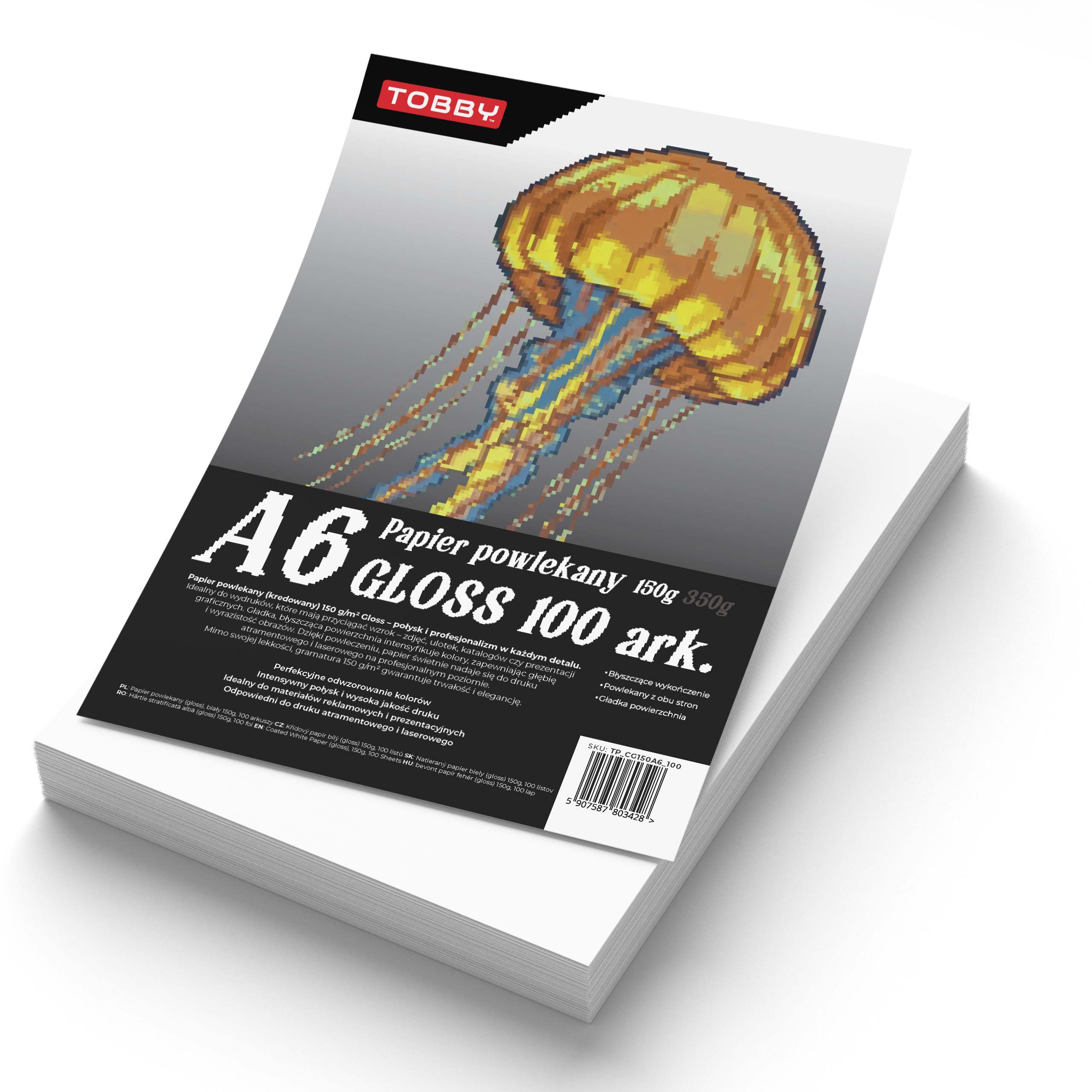 Papier kredowy powlekany A6 150 g/m gloss 100 arkuszy do druku 105x148 mm Papier kredowy A6 150 g/m2 Gloss Ilośc arkuszy: 100 ark. Gramatura: 150 g/m2 Kolor: biały Struktura: kredowy, powlekany Format: A6 105x148 mm Biały papier powlekany Gloss Profesjonalny papier kredowy z połyskiem, stworzony z myślą o efektownych wydrukach zdjęć, ulotek i grafik. Jego gładka, błyszcząca powierzchnia świetnie oddaje kolory i zapewnia ostrość detali. Doskonały wybór dla wszystkich, którzy oczekują jakości premium w materiałach wizualnych. Najważniejsze cechy Błyszczące wykończenie nadaje wydrukom elegancki, profesjonalny charakter. Powierzchnia gloss wzmacnia nasycenie kolorów i poprawia kontrast, co sprawia, że zdjęcia i projekty prezentują się wyraziście i efektownie. Powlekany dwustronnie - papier jest równomiernie gładki z obu stron, dzięki czemu idealnie nadaje się do obustronnego druku, bez efektu rozmazywania czy utraty jakości. Gramatura 150 g/m2 zapewnia lekkość w użyciu, przy jednoczesnej sztywności i odporności na zagniecenia. To doskonały kompromis między solidnością a wygodą - idealny do codziennego zastosowania profesjonalnego. Odpowiedni do druku atramentowego i laserowego, co czyni go uniwersalnym wyborem zarówno do biura, jak i do pracowni graficznej. Niezależnie od sprzętu, możesz liczyć na czysty, ostry i trwały efekt. Nadaje się również do druku Doskonały do ulotek, katalogów, plakatów reklamowych i zdjęć. Gwarantuje wysoką trwałość i estetykę wydruku. Świetny wybór dla wymagających użytkowników ceniących jakość premium.