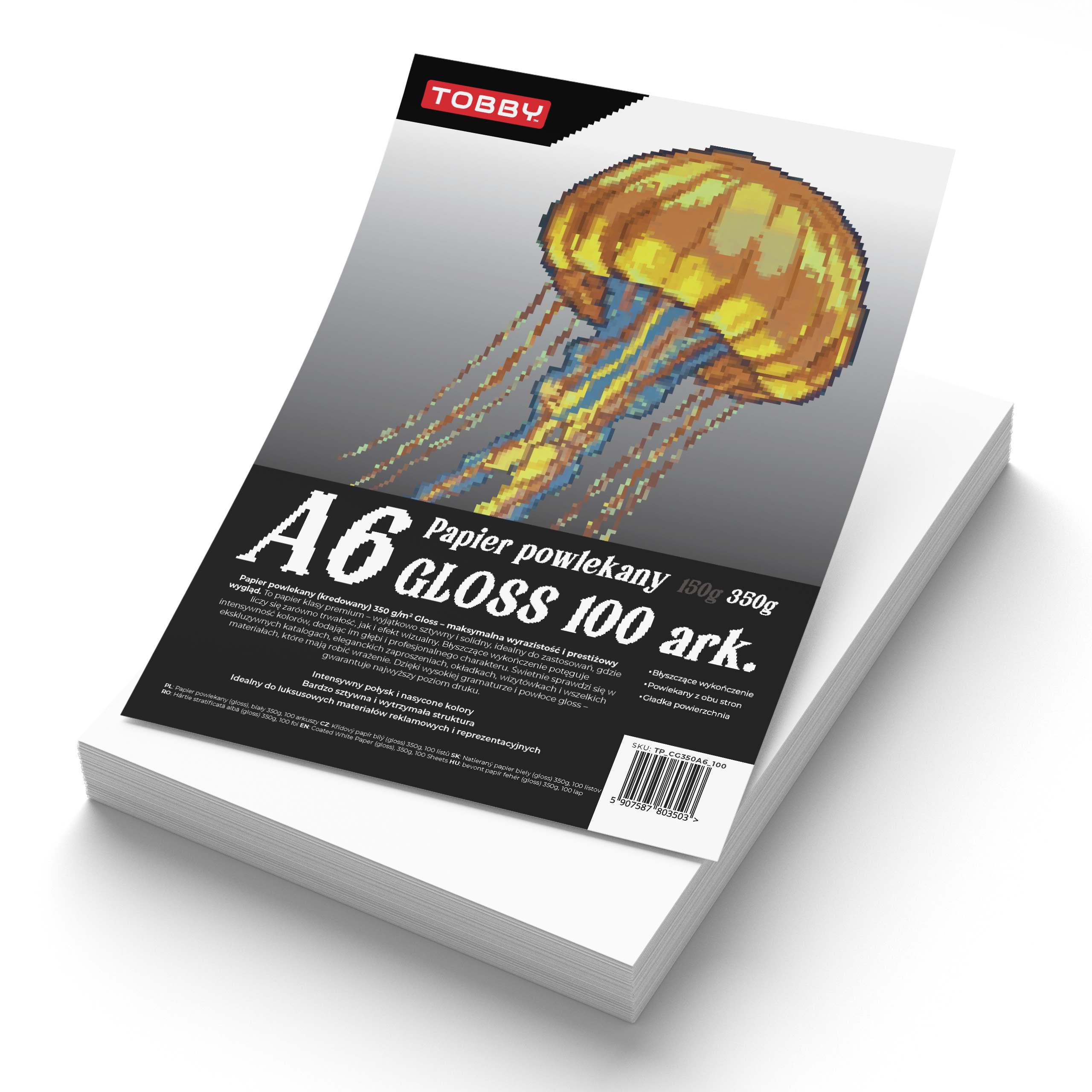 Papier kredowy A6 350 g Gloss Ilość arkuszy: 100 ark. Gramatura: 350 g Kolor: biały Struktura: kredowy, powlekany Format: A6 (105x148 mm) Papier kredowy powlekany A6 350 g/m gloss 100 arkuszy do druku 105x148 mm Gramatura papieru 350g Papier kredowy powlekany A6 350 g/m gloss 100 arkuszy do druku 105x148 mm EAN (GTIN) 5907587803503 Biały papier powlekany Gloss Papier klasy premium o wyjątkowej sztywności i eleganckim połysku - stworzony do luksusowych wydruków i projektów reprezentacyjnych. Błyszcząca powierzchnia potęguje intensywność kolorów, dodając im głębi i profesjonalnego wykończenia. Idealny do zastosowań, w których liczy się zarówno jakość druku, jak i prestiżowy efekt wizualny. Papier kredowy powlekany A6 350 g/m gloss 100 arkuszy do druku 105x148 mm Gramatura papieru 350g Papier kredowy powlekany A6 350 g/m gloss 100 arkuszy do druku 105x148 mm Kod producenta TP_CG350A6_100 Najważniejsze cechy Błyszczące wykończenie sprawia, że każdy wydruk nabiera wyrazistości i elegancji. Powierzchnia gloss gwarantuje wysoki kontrast i nasycone barwy, dzięki czemu projekty prezentują się nowocześnie i efektownie. Powlekany obustronnie, co pozwala na drukowanie po obu stronach bez obaw o przebijanie, rozmazywanie czy utratę jakości. Gładka powierzchnia zapewnia maksymalną kontrolę nad efektem końcowym. Gramatura 350 g to najwyższa sztywność i solidność - idealna do ekskluzywnych projektów, takich jak zaproszenia, okładki, wizytówki czy katalogi. Ten papier wygląda dobrze, trzyma się świetnie i robi wrażenie od pierwszego spojrzenia. Odpowiedni do druku atramentowego i laserowego, co czyni go uniwersalnym wyborem zarówno do biura, jak i do pracowni graficznej. Niezależnie od sprzętu, możesz liczyć na czysty, ostry i trwały efekt. Papier kredowy powlekany A6 350 g/m gloss 100 arkuszy do druku 105x148 mm Gramatura papieru 350g Papier kredowy powlekany A6 350 g/m gloss 100 arkuszy do druku 105x148 mm Marka Tobby Nadaje się również do druku Doskonały do ulotek, katalogów, plakatów reklamowych i zdjęć. Gwarantuje wysoką trwałość i estetykę wydruku. Świetny wybór dla wymagających użytkowników ceniących jakość premium.