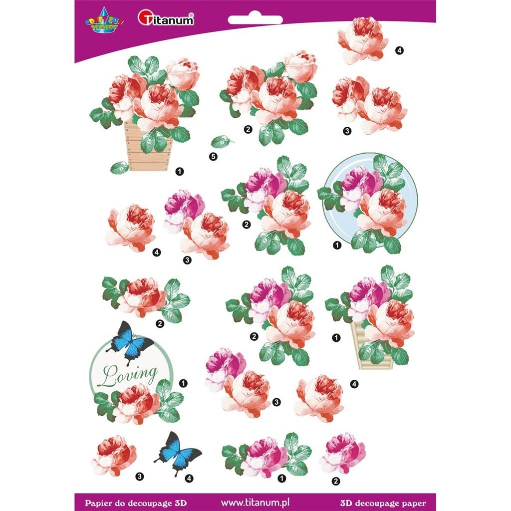 Opakowanie Papier do decoupage 3D kwiaty róże arkusz