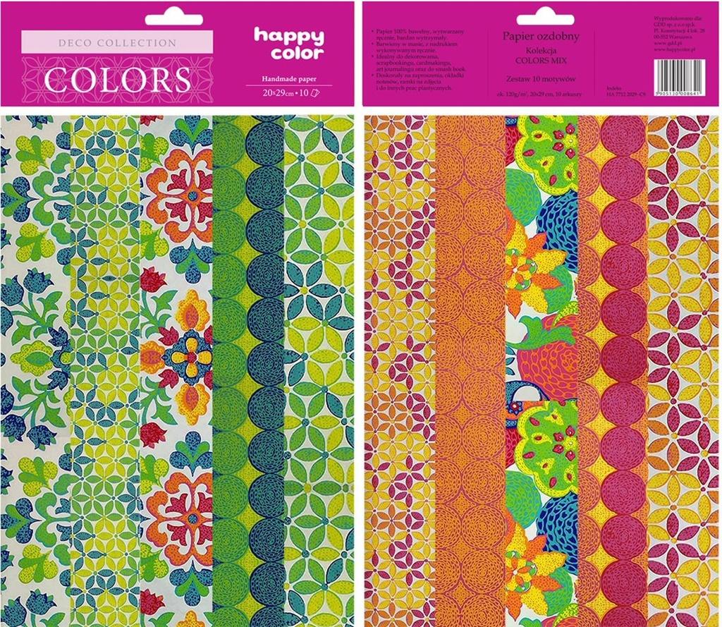 Papiery ozdobne Colors mix 20x29 cm HAPPY COLOR 10 motywów,10 arkuszy.