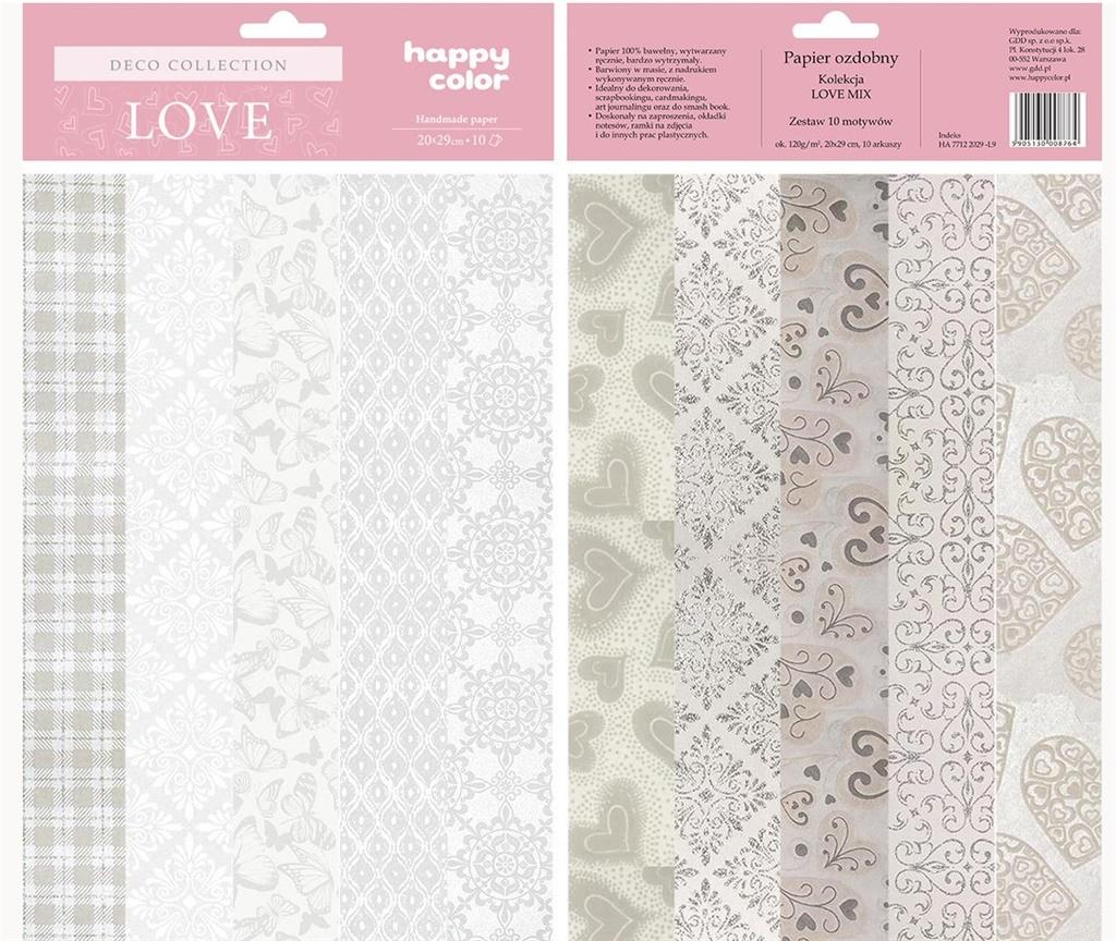 Papier ozdobny Love mix 20x29 cm HAPPY COLOR 10 motywów,10 arkuszy.