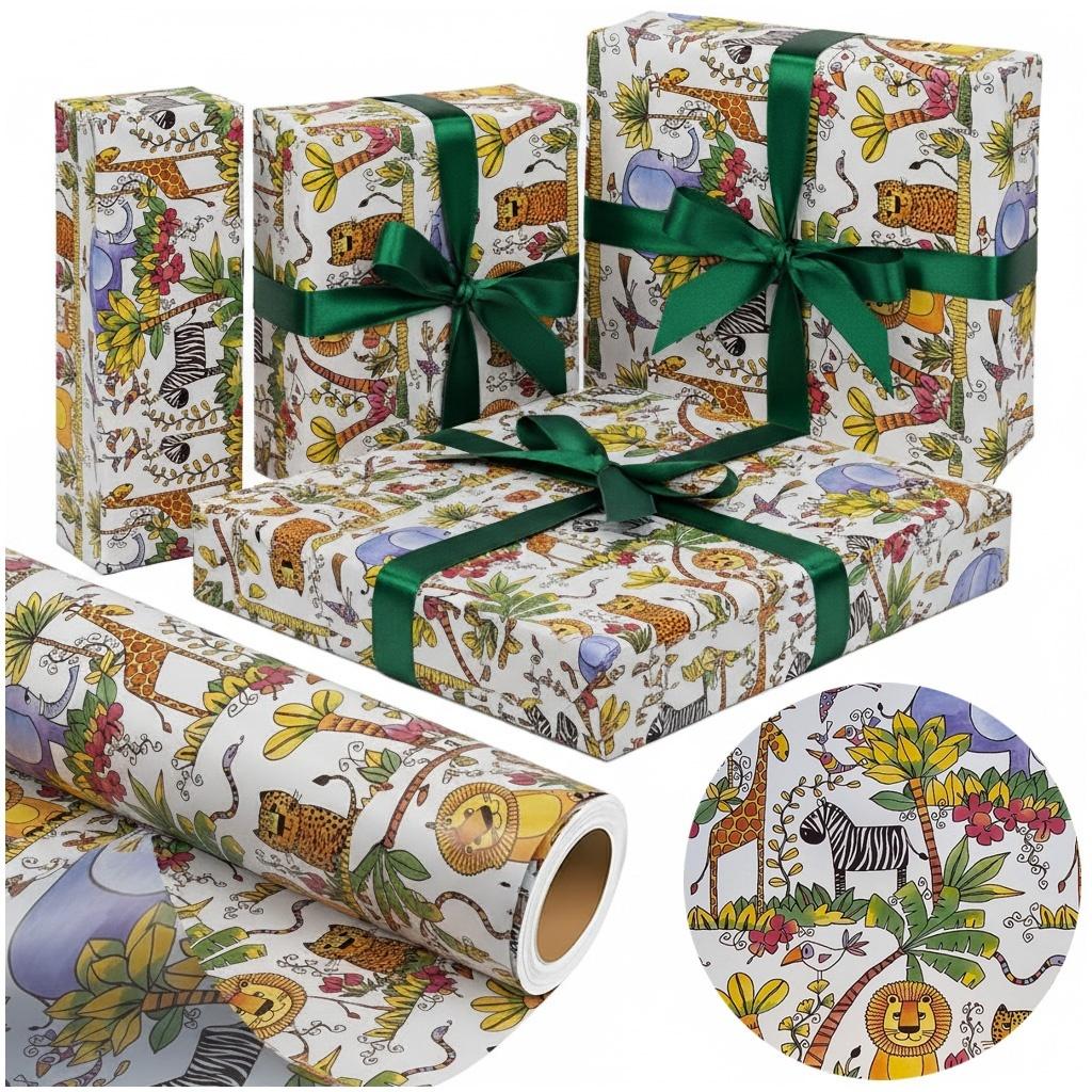 Papier ozdobny WESOŁE SAFARI zachwyca bajkowym wzorem, w którym królują egzotyczne zwierzęta i soczyste barwy natury. To idealny wybór do pakowania prezentów dziecięcych, dekoracji pokoju, projektów DIY czy scrapbookingu. Z papierem WESOŁE SAFARI każdy prezent zamieni się w kolorową opowieść pełną ciepła, uśmiechu i pozytywnej energii.