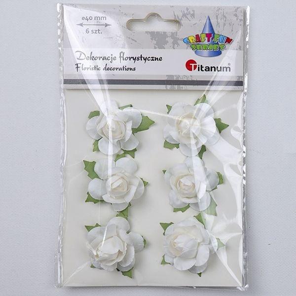 Opakowanie Papierowe róże na druciku 40mm białe 6szt.