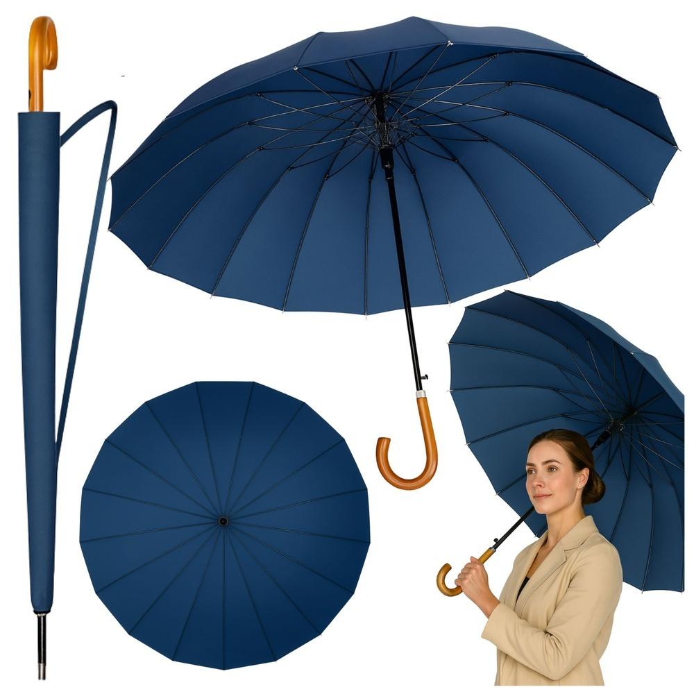 PARASOL AUTOMATYCZNY DŁUGI 24-ŻEBERKOWY 115 CM POKROWIEC NA RAMIĘ DREWNIANA RĄCZKA