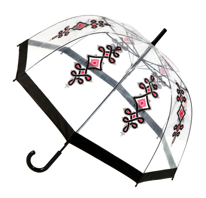 Parasol przeźroczysty z klasycznym wzorem parzenicy góralskiej.