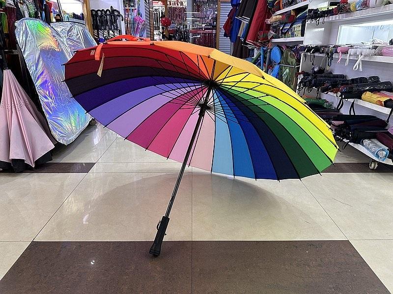 Parasol tęczowy długi, z pokrowcem na ramię, ręcznie rozkładany.