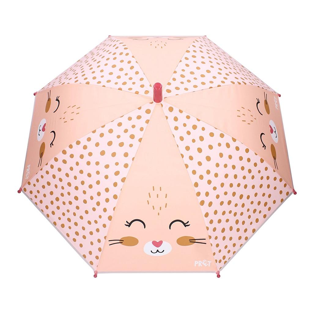 Parasolka dziecięca, Kotek, Pret Kolorowy parasol dla dziecka.. Dzięki niemu dzieci pozostają suche w deszczu. Parasol dziecięcy jest łatwy do ręcznego otwierania i zamykania. Zaokrąglony uchwyt jest wygodny w trzymaniu. Idealny na deszczowe dni! Trwały i estetycznie wykonany parasol posiada funkcję szybkiego, półautomatycznego otwierania. Stelaż, paseczek spinający oraz rączka są dopasowane kolorystycznie. Czarujące wzornictwo zachęcą dziecko do spacerowania, nawet w deszczowy dzień. Parasol PRET dla dzieci to świetny pomysł na prezent. W kolekcji także plecaki, aby skomponować super modny zestaw. Idealny na deszczowe dni! Ten parasol zapewni dzieciom suchość podczas deszczu. Średnica 73 cm sprawia, że parasol jest idealny dla dzieci. Parasol jest bardzo łatwy do ręcznego otwierania i zamykania. Nakładki na dole żeberek zapobiegają skaleczeniu się dziecka. Zaokrąglony uchwyt jest wygodny do trzymania. Wymiary po rozłożeniu: 73 cm x 73 cm x 63 cm. Materiał: 100% poliester. Kategoria wiekowa: 3+