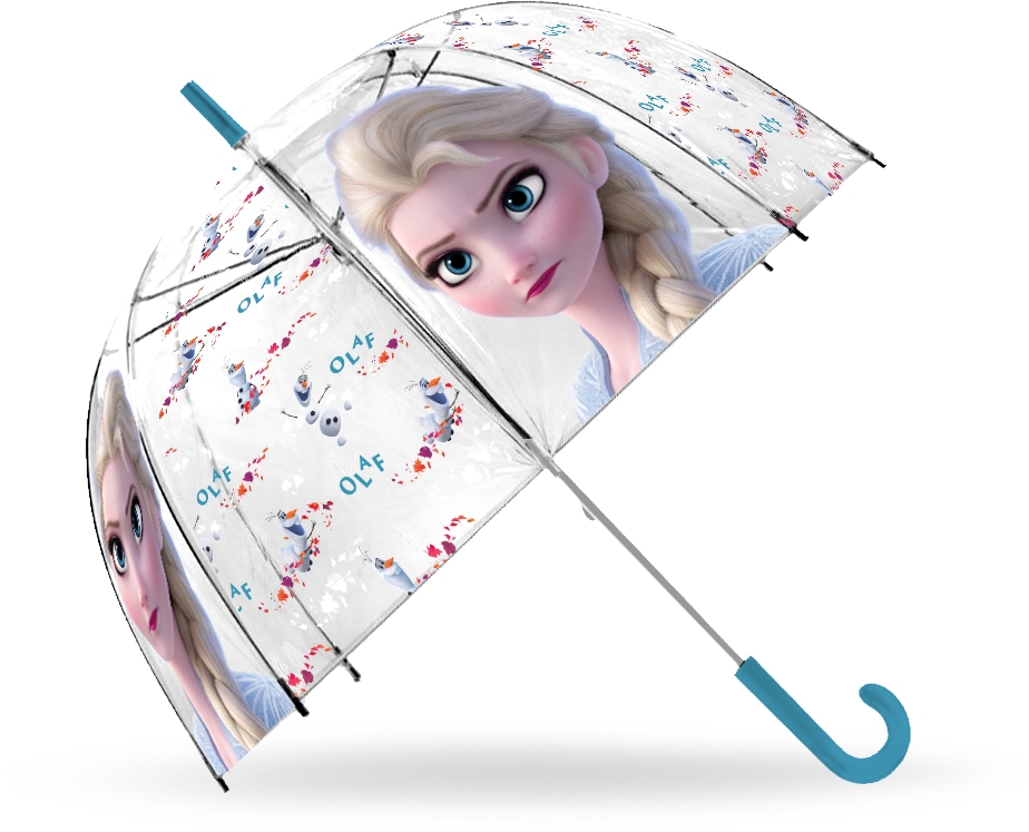 Parasolka z motywem Frozen, automatyczna, przezroczysta, zapewni doskonałą ochronę dziecko zarówno przed deszczem jak i słońcem.
