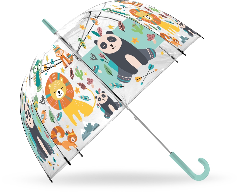 Parasolka Jungle, manualna, przezroczysta, zapewni doskonałą ochronę dziecko zarówno przed deszczem jak i słońcem. Prosta i łatwa w obsłudze.