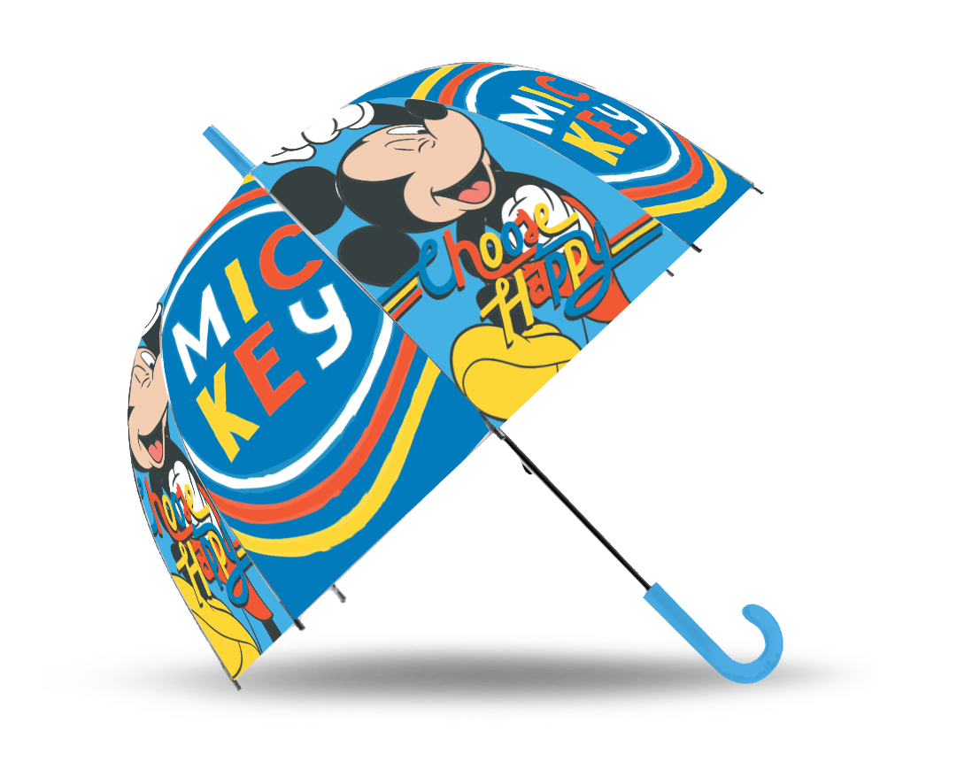 Parasolka Myszka Miki, manualna, zapewni doskonałą ochronę dziecko zarówno przed deszczem jak i słońcem.