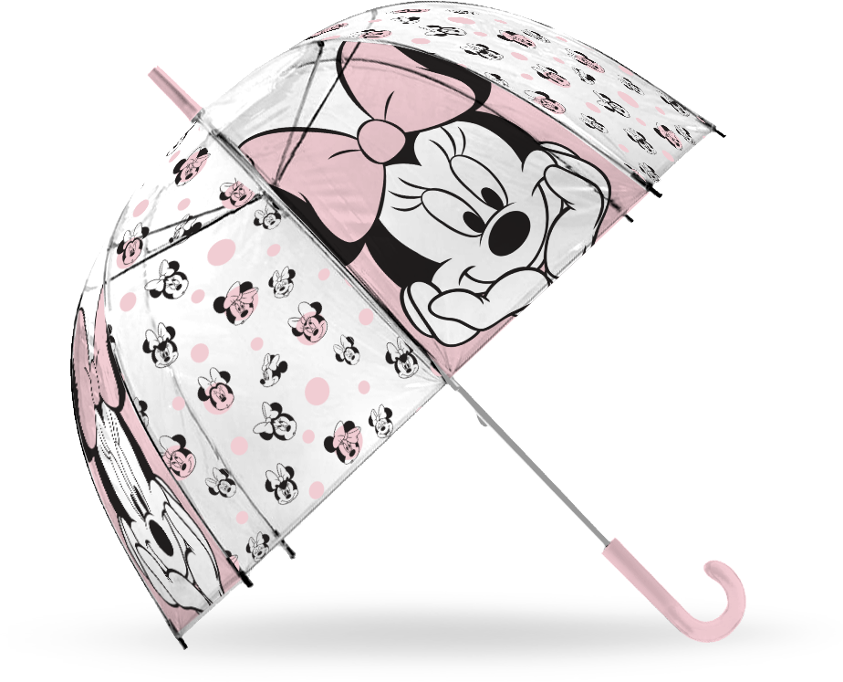 Parasolka z motywem Myszki Minnie, automatyczna, przezroczysta, zapewni doskonałą ochronę dziecko zarówno przed deszczem jak i słońcem.