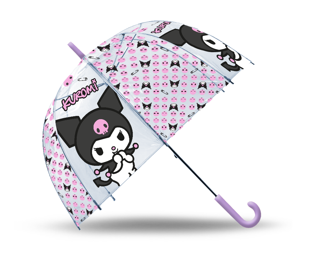 Parasolka Kuromi, manualna, przezroczysta, zapewni doskonałą ochronę dziecko zarówno przed deszczem jak i słońcem.