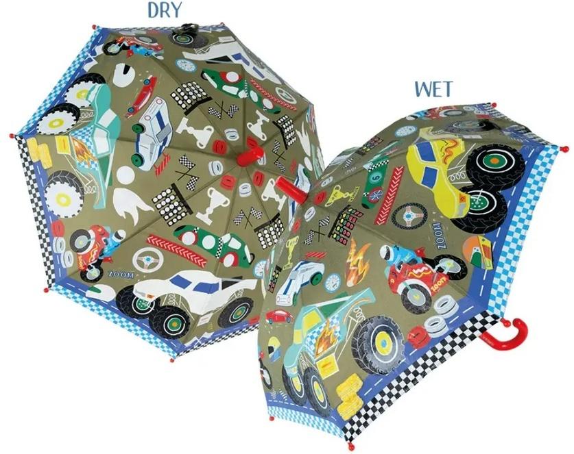 Zapewnij swojemu dziecku niezapomniane przygody podczas spacerów w deszczu dzięki magicznej parasolce zmieniającej kolory! Za każdym razem, gdy deszcz zaczyna padać, białe kształty na parasolce magicznie wypełniają się kolorowymi motywami samochodów, rozweselając nawet najbardziej pochmurny dzień. Gdy parasolka wysycha, kolory wracają do bieli. W komplecie znajduje się wygodne zapięcie na rzep, które zabezpiecza złożoną parasolkę.