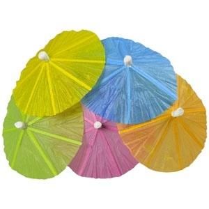 Papierowe parasolki na wykałaczce do dekoracji deserów bądź napoi. Długość 10cm, średnica rozłożonej parasolki 7,5cm.