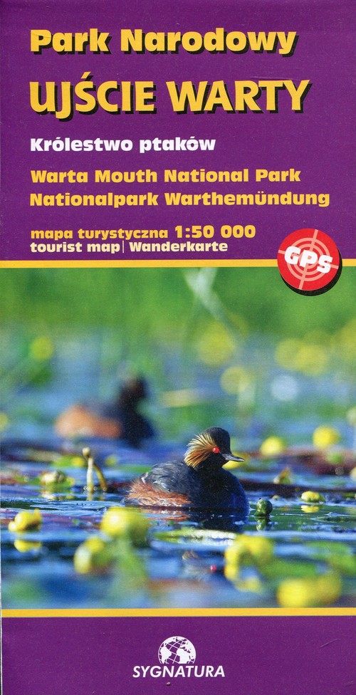 Szczegółowa mapa Parku Ujście Warty z wieloma ciekawymi informacjami turystycznymi jak: wypożyczalnie sprzętu turystycznego, szlaki turystyczne, trasy rowerowe. W mapie rozmieszczono ikonki ptaków wskazujące na ich miejsca występowania. Na rewersie mapy kilkanaście unikatowych zdjęć ptaków.