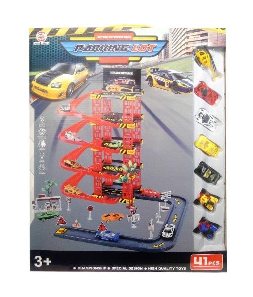 Zestaw parking - 4 poziomy wraz z 4 samochodzikami, 2 quadami i helikopterem. Teraz pojazdy znajdą bezpieczne miejsce do parkowania, a winda znajdująca się w zestawie im w tym pomoże. W skład zestawu wchodzi 41 części. #&Produkt zapakowany w kartonowe opakowanie z uchwytem. #&Zestaw przeznaczony dla dzieci od 3 lat. #&Podane wymiary stanowią wymiar opakowania.