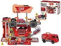 parking - baza straży pożarnej, metalowe pojazdy, 46 części, wym.rozłożonego 35x35x28cm; 31x20x14cm, Box