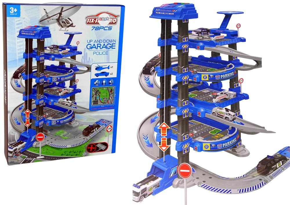 Policyjny Parking Czteropoziomowy 1:64 Pojazdy Dźwięk Światła Maluchy uwielbiają zabawki wielofunkcyjne, które pozwolą dać upust ich wyobraźni i dają wiele możliwości. Dlatego zabawa szybko się nie znudzi. Stwórz własną bazę policyjną, z profesjonalną windą i parkingami. Składanie całego czteropoziomowego parkingu rozwinie zdolności manualne, precyzje oraz kreatywności. Sama zabawa pobudzi jego wyobraźnie i pozwoli tworzyć najróżniejsze scenariusze zabaw. Czas na super zabawę ! Zestaw składa się z 78 elementów, co stanowi wyzwanie do ułożenia takiego parkingu. Poza tym w zestawie znajdują się 2 autka policyjne, samolot oraz elektryczna winda. Cztery przyciski windy odpowiadają za super melodie oraz wciąganie i opuszczanie windy. Wystarczy nacisnąć żółty przycisk, a winda unosi autko do góry. Wszystkie elementy są wyprodukowane z najwyższej jakości plastiku, dlatego zabawka jest trwała. Nie posiada również ostrych zakończeń. Elementy zestawu: -parking czteropoziomowy - winda z automatycznym wciąganiem i dźwiękami - samolot transportowy - 2 autka policyjne - elementy do montażu parkingu Wymiary elementów zestawu: -parking: 67 cm x 60 cm x 32 cm -autka: 7 cm x 4 cm x 3 cm - samolot: 10 cm x 4 cm x 2 cm Wymiary opakowania: 51 cm x 38 cm x 9 cm Zabawka przeznaczona dla dzieci powyżej 3 roku życia. Wykonana z bezpiecznego materiału. Parking zasilany jest trzema bateriami 1,5 V AA, brak w zestawie.