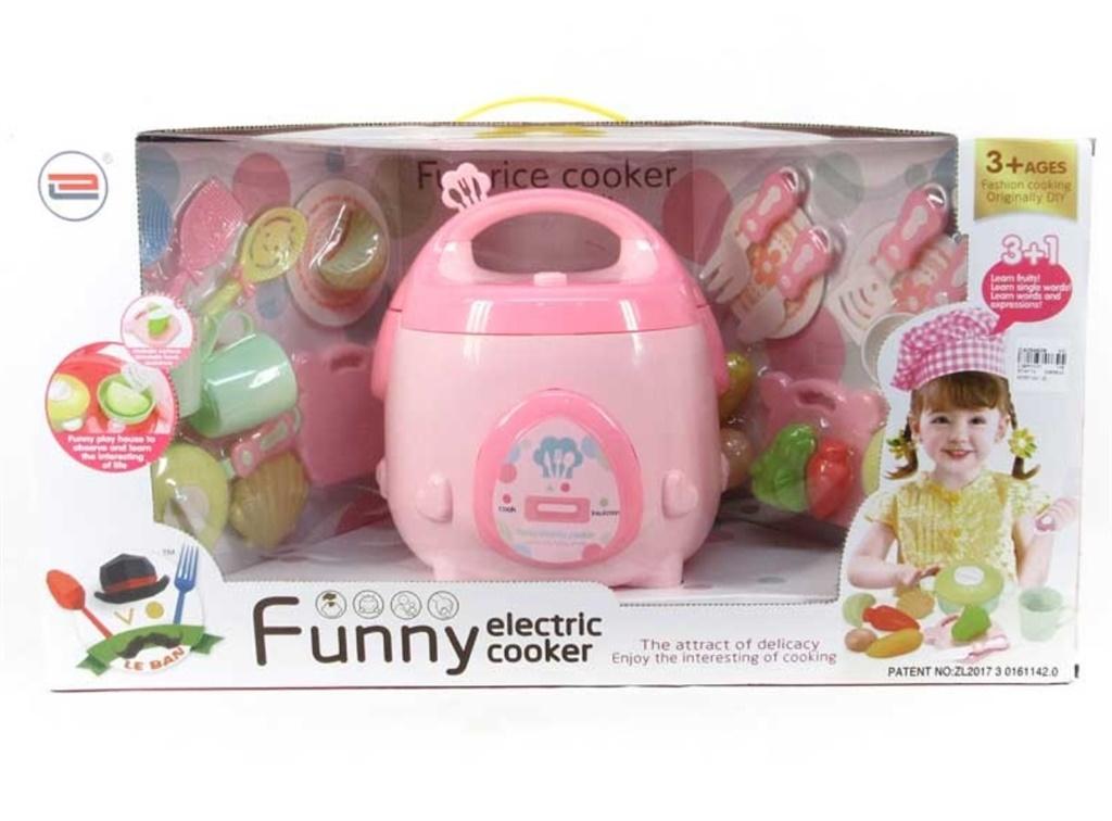 Zestaw do zabawy zawierający parowar, kuchenkę zasilaną bateriami oraz akcesoria.