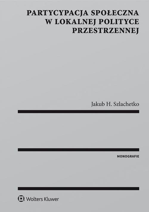 Książka prezentuje problematykę udziału społeczeństwa w kształtowaniu i prowadzeniu polityki przestrzennej. Omówiono w niej m.in. takie zagadnienia, jak: - dostęp partycypujących do informacji publicznej, - prawne formy partycypacji społecznej w lokalnej polityce przestrzennej, - gwarancje partycypacji społecznej w lokalnej polityce przestrzennej. Publikacja opiera się na wykładni obowiązujących przepisów prawa, analizie orzecznictwa sądowego i administracyjnego, poglądów doktryny prawa oraz literatury przedmiotu.