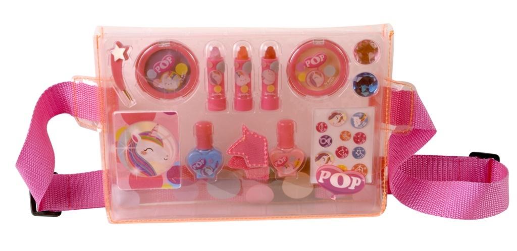 Pasek do makijażu zawiera 3 szminki, 1 aplikator, 2 pierścionki, 2 lakiery do paznokci, 1 pilnik do paznokci, 2 kremowe cienie do powiek i 1 arkusz naklejek na paznokcie z 12 naklejkami