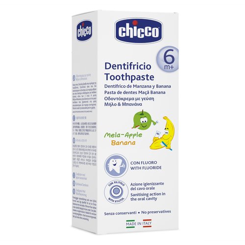 Smak jabłkowo-bananowy zachęca do codziennej higieny jamy ustnej. Pasta zawiera fluor i ksylitol.
