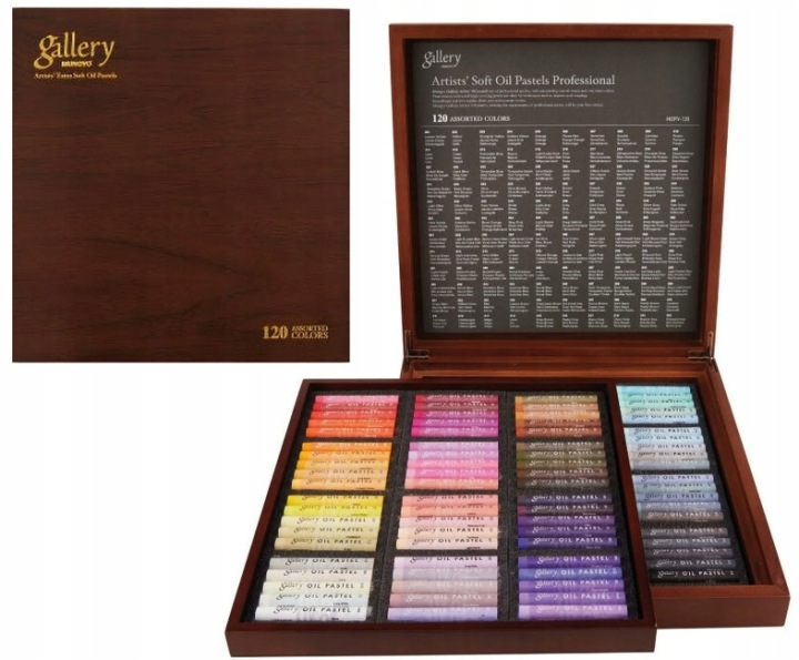 Opakowanie Pastele olejne miękkie Mungyo Gallery Artists MOPV-120W w opakowaniu drewnianym 120szt.