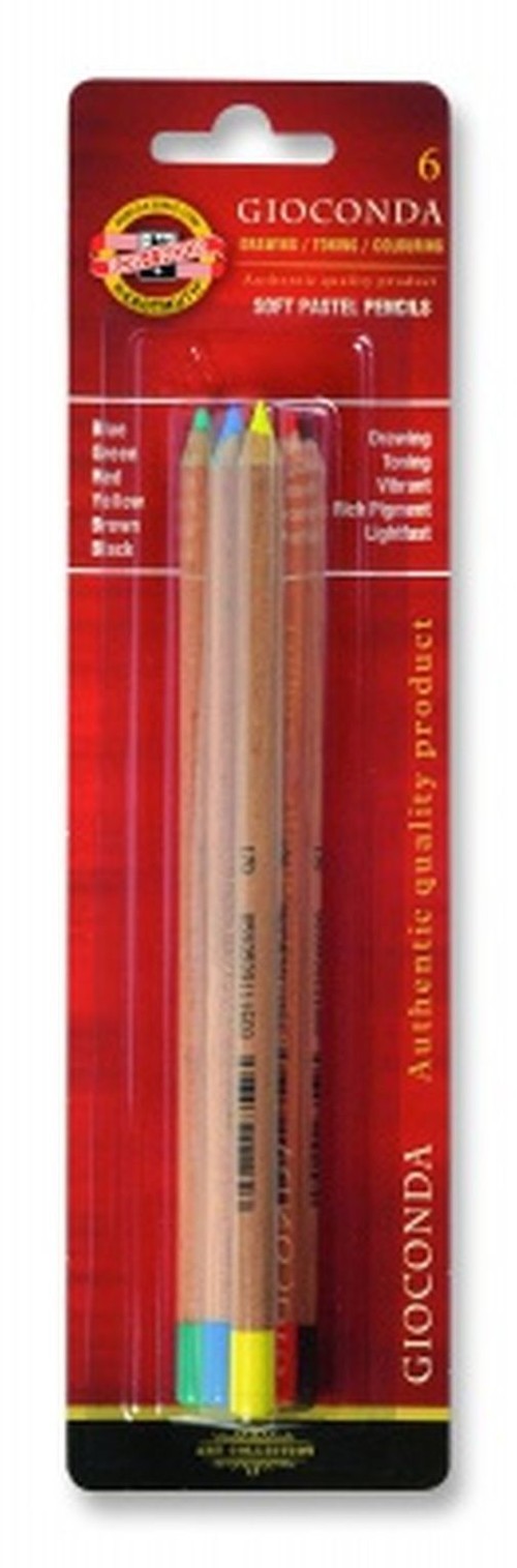 Opakowanie Pastele suche Gioconda w ołówku 6 kolorów (niebieski+ czerwony+żółty+brązowy+czarny) 8826/6