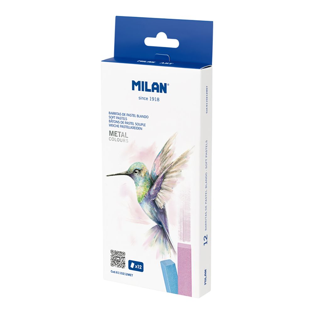 Pastele suche miekkie, w 12 metalicznych kolorach, w kartonowym opakowaniu, MILAN ART.
