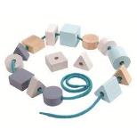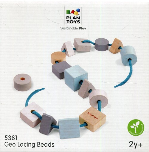 Drewniane klocki do nawklekania w pastelowych kolorach. Uczą cierpliwości i precyzyjnych ruchów. Mogą stanowić pierwszą biżuterię dziecka. Uczą kształtów oraz rozróżniania kolorów. Do zestawu dołączony jest sznurek do nawlekania. Firma Plan Toys należy do światowej czołówki pod względem produkcji ekologicznych zabawek. Jako pierwsza zaczęła wykorzystywać do produkcji naturalne, ponownie przetworzone drewno kauczukowe. Dba także o to, aby stosowane farby, kleje, jak również opakowania zabawek oraz same metody ich produkcji były w jak największym stopniu przyjazne środowisku. Bezpieczeństwo zabawek Plan Toys potwierdzają europejska norma E71 i amerykański standard ASTM.