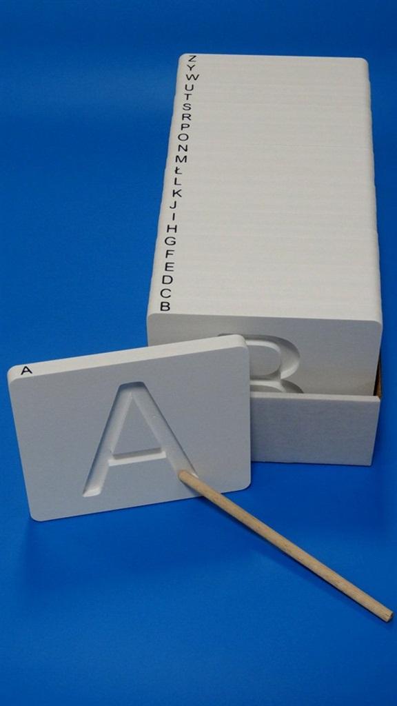 Pisanie jest procesem skomplikowanych czynności. Dziecko musi prawidłowo spostrzegać i zapamiętać graficzny obraz poszczególnych liter. Musi także rozpoznać dźwięki wchodzące w skład wyrazu, podporządkować odpowiednie znaki graficzne i w odpowiedniej kolejności je zapisać. Do tego powinno mieć też odpowiednio sprawną rękę. Dziecko musi prawidłowo spostrzegać kształty liter wchodzących w skład sylab, wyrazów i dostrzegać między nimi podobieństwa i różnice.Gdy dziecko nauczy się czytać może zacząć uczyć się pisać.U podstaw procesu pisania w początkowej jego fazie zasadniczą rolę odgrywa współdziałanie wzrokowych, słuchowych i ruchowych ośrodków kory mózgowej. Aby odtworzyć litery dziecko musi wywołać i skojarzyć odpowiednie wyobrażenia graficzne, słuchowej ruchowe.Efektem tego jest znak graficzny w postaci sylaby, wyrazu. Umiejętności prawdziwego spostrzegania i odtwarzania kształtów graficznych jest ogromnie ważna w przygotowaniu dziecka do nauki pisania.Zestaw liter do pisania drewnianym patyczkiem jest pomocą wspomagającą naukę czytania i pisania. W procesie rozpoznawania samogłosek i sylab wykorzystujemy takie umiejętności jak:- wzrokowe postrzeganie samogłosek, sylab- zapamiętanie wzorca słuchowego samogłosek, sylab- poprawne artykułowanie samogłosek, sylab- dostrzeganie, czytanie i pisanie liter od lewej do prawej strony- planowanie ruchów ręki- usprawnianie motoryki dominującej ręki.Wykorzystując zestaw liter możemy pisać sylaby:- tworzyć sylaby z jednego paradygmatu sylab otwartych, za każdym razem zmieniając samogłoskę. Pozwoli to dziecku dostrzec, iż w odczytywanym wzorze sylab pierwsza literajest taka sama a druga zmienia się- tworząc sylaby otwarte, które kończą się tą samą samogłoską. Za każdym razem zmieniamy pierwszą literę. W tym przypadku dziecko powinno dostrzec, iż pierwsza litera jest różna, a druga taka sama- tworząc konstrukcje samogłoska + spółgłoska + samogłoska- łącząc sylaby otwarte w pseudowyrazy i wyrazy znaczące.Wykorzystując zestaw liter możemy pisać wyrazy:- tworząc wyrazy z sylab- tworząc trudne wyrazy o konstrukcji spółgłoska + samogłoska + spółgłoska.Materiał ten można samodzielnie wzbogacić o ćwiczenie z koralikami lub innymi materiałami układając elementy wewnątrz wzoru liter. Zadanie z koralikami, to doskonała forma ćwiczeń koordynacji wzrokowo - ruchowej, manipulacyjnych.