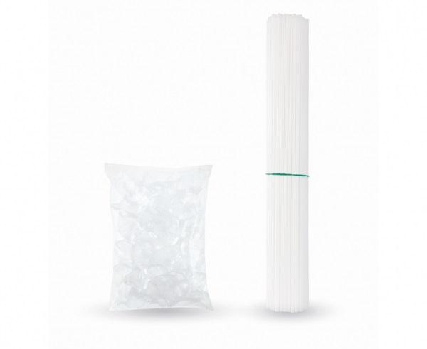 Białe plastikowe patyki wraz z zatyczkami (koszyczkami) przeznaczone do mocowania balonów foliowych i gumowych o długości ok. 38 cm
