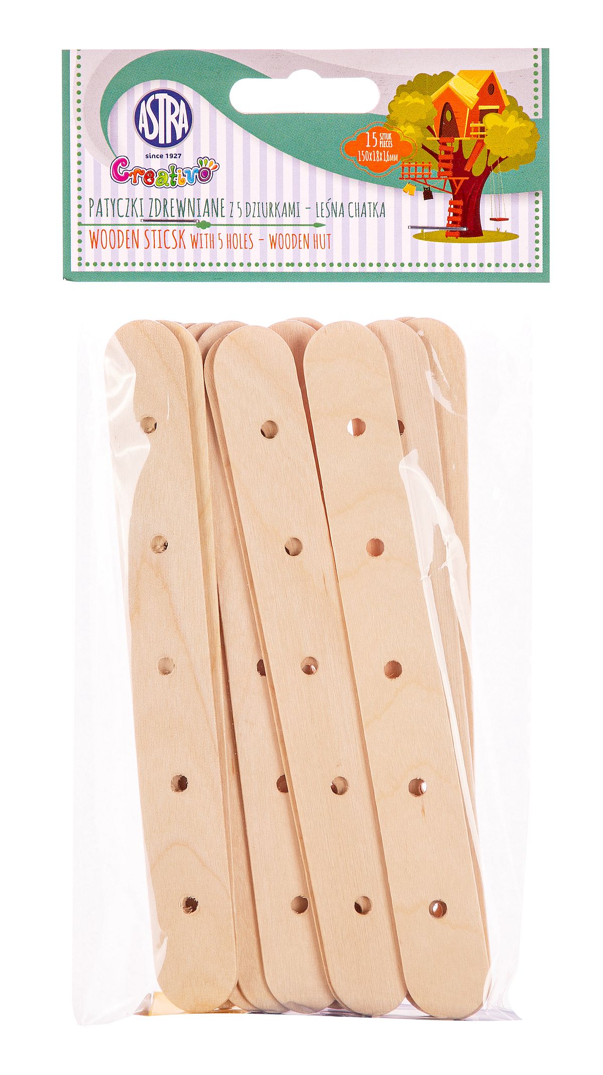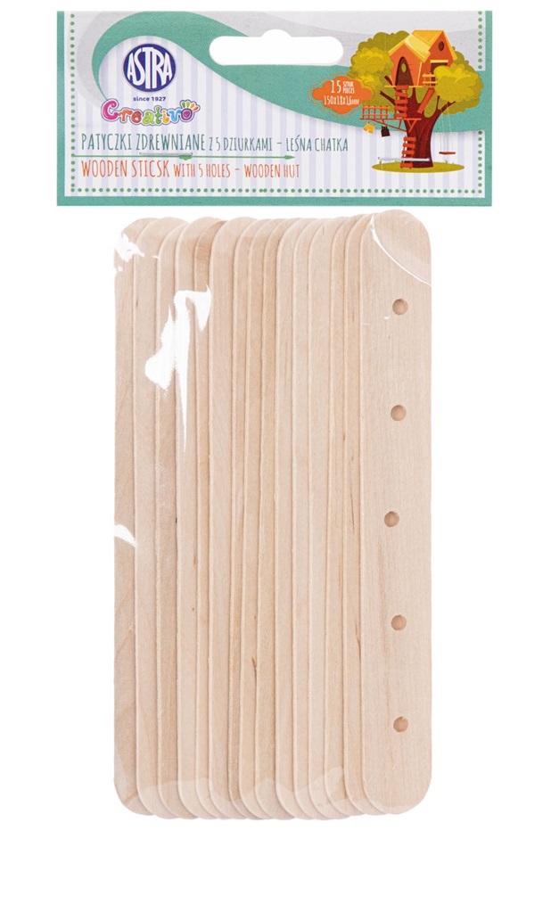 Opakowanie Patyczki drewniane Astra Bajkowe dekoracje z dziurkami 15 sztuk