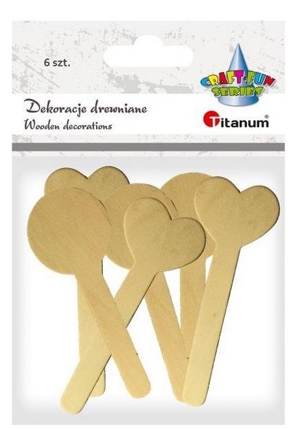 Patyczki drewniane z dekoracją serce, kółko sklejka 1,5mm 6szt.