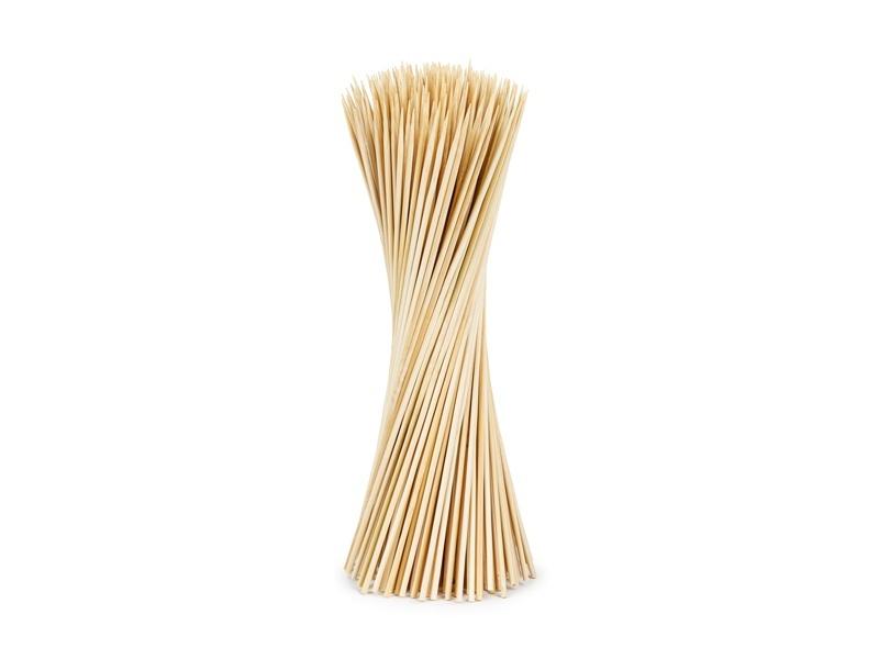 Patyczki drewniane do szaszłyków o długości ok. 25 cm. Zestaw zawiera 200 sztuk.(1 op. / 200 szt.)