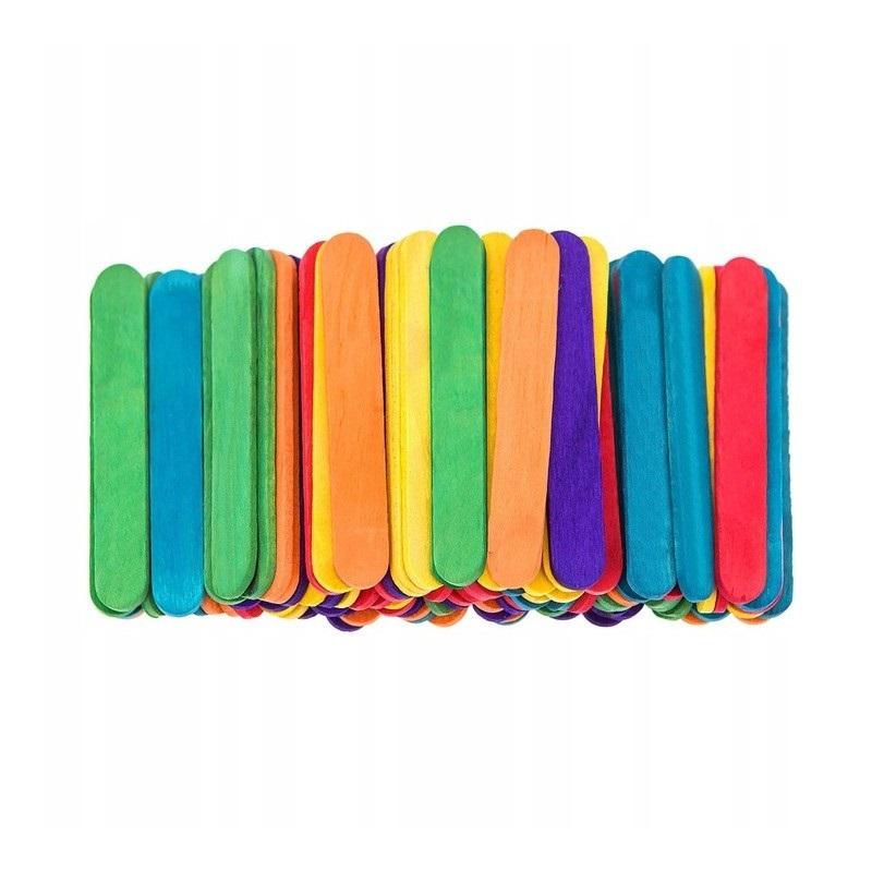 Wielobarwne drewniane mini patyczki idealnie nadają się do wszelkiego rodzaju dziecięcej aktywności twórczej DIY. Wystarczy tylko trochę kleju i dziecięca wyobraźnia.