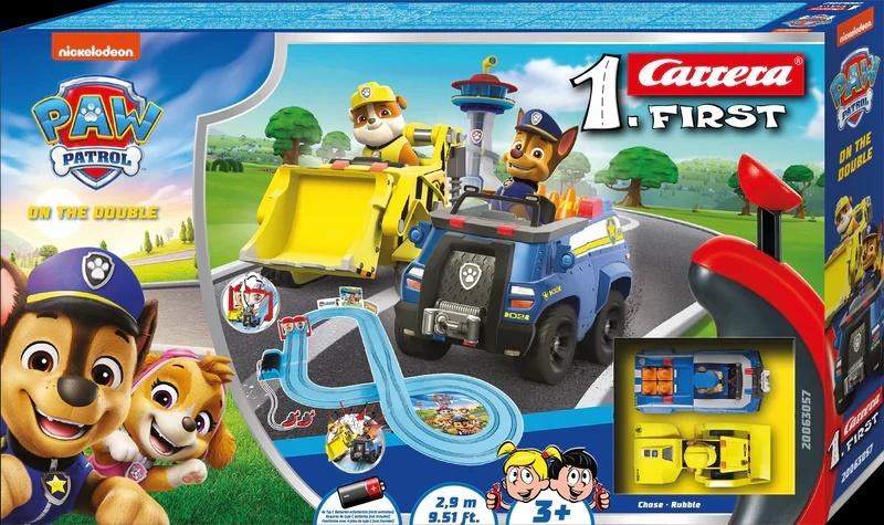 Dzięki zestawowi Carrera FIRST "PAW Patrol - On the Double" mali bohaterowie w wieku od 3 lat mogą przeżywać ekscytujące przygody z Chase'em i Rubble'em! Podobnie jak w popularnym serialu, dzielni futrzani przyjaciele wyruszają na misje i pokazują, co oznacza prawdziwa praca zespołowa. Przyjazny dzieciom tor do zabawy zapewnia mnóstwo zabawy w pokoju dziecięcym dzięki wąskim sekcjom do zabawnych zderzeń i elementom do obracania, które zapewniają zaskakujące zwroty akcji. Tematyczne elementy dekoracyjne ożywiają świat Adventure Bay i sprawiają, że gra staje się prawdziwym przeżyciem. Zestaw Carrera FIRST PAW Patrol - On the Double Set zapewnia wiele godzin zabawy i pozwala małym pilotom zanurzyć się w świecie PAW Patrol raz za razem.