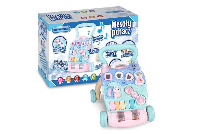 Funkcje: światło, dźwięki, regulacja głośności, sorter, wyjmowany telefon, obrotowe elementy , pianinko (gra gamę), wyjmowany króliczek.