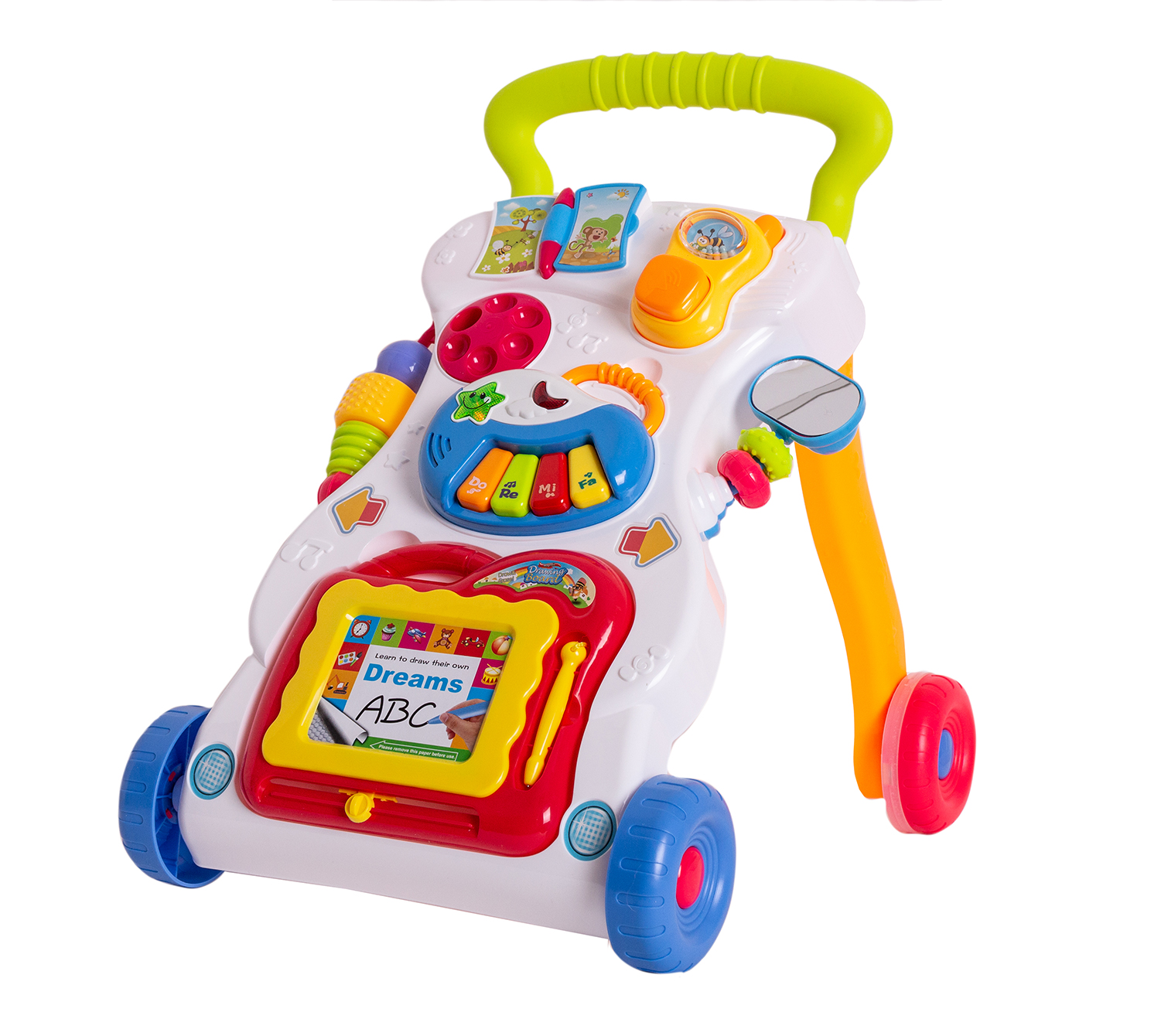 Pchacz pomaga przy stawianiu pierwszych kroków dziecka, ale jest też miejscem do zabawy.
