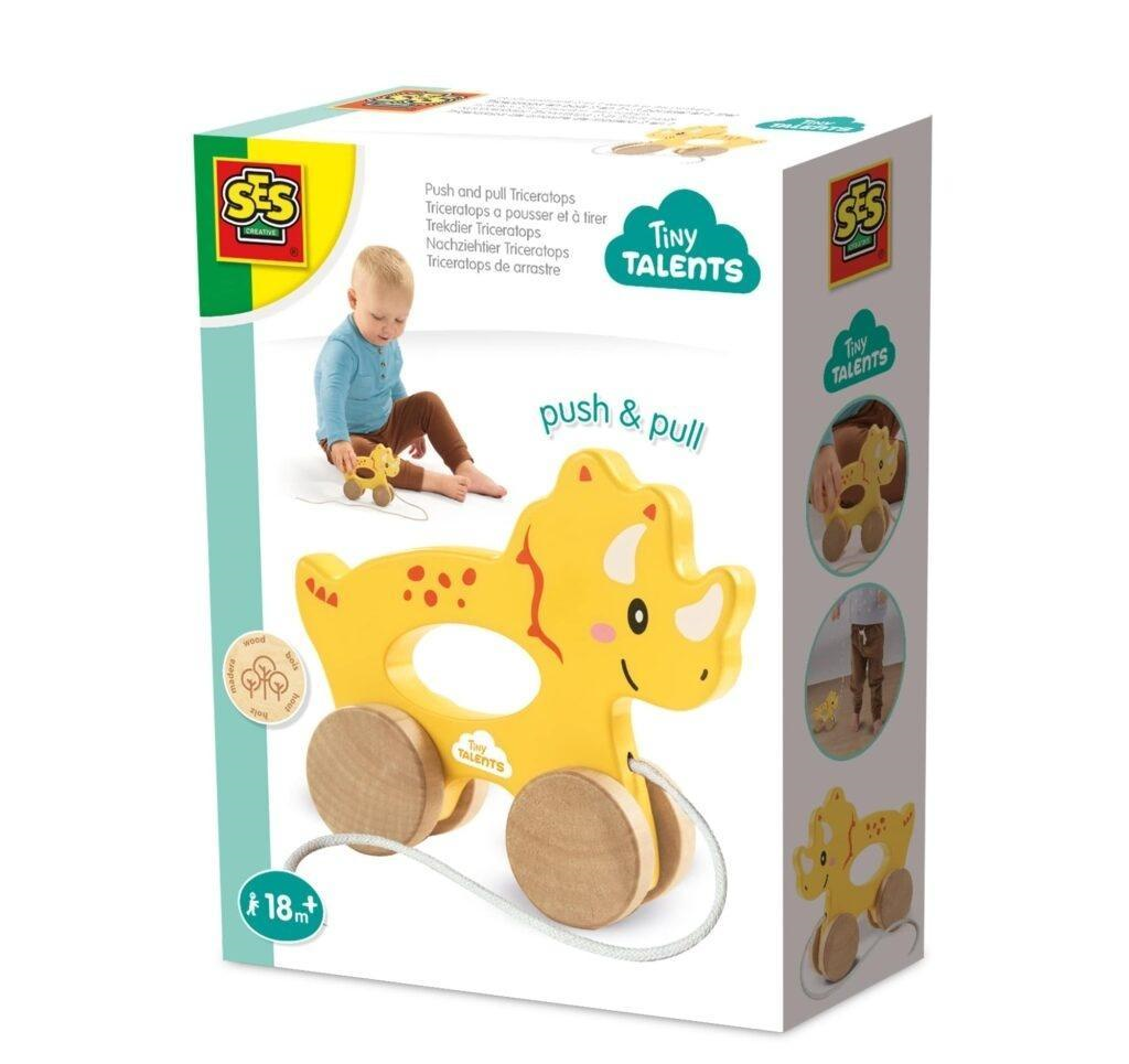 Pchaj i ciągnij 2w1 drewniany Triceratops