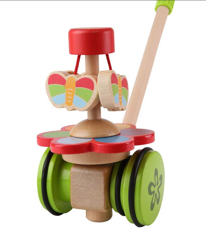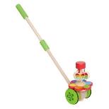 Wykonana z ekologicznego drewna i pomalowana bezpiecznymi farbami wodnymi zabawka do pchania. Podczas pchania kolorowe elementy wirują przyciągając uwagę malucha. Wytrzymała, drewniana pchajka zachęci dziecko do chodzenia i wspomoże rozwój motoryczny. Gumowe osłonki na kółeczkach ochronią je podczas spaceru na dworze a podłogę podczas zabawy w domu. Wiek: +12 miesięcy Wymiary produktu: 10 x 18 x 57 cm
