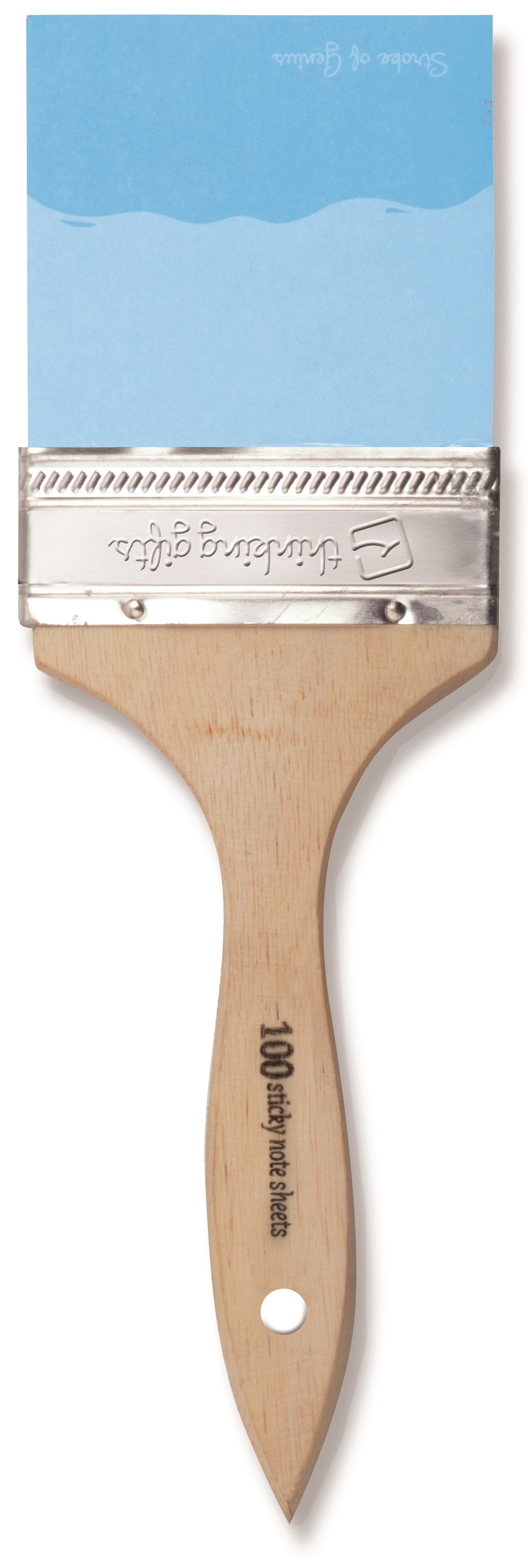 100 karteczek samoprzylepnych umieszczonych na drewnianym pędzlu.