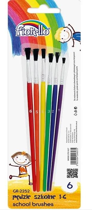 Zestaw 6 okrągłych pędzli, rozmiar 1-6, naturalny kozi włos, plastikowa rączka, metalowe okucia