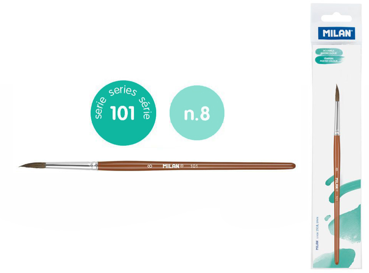 Opakowanie Pędzel okrągły z włosia koziego seria 101 nr 8 Milan 1 szt. na blistrze