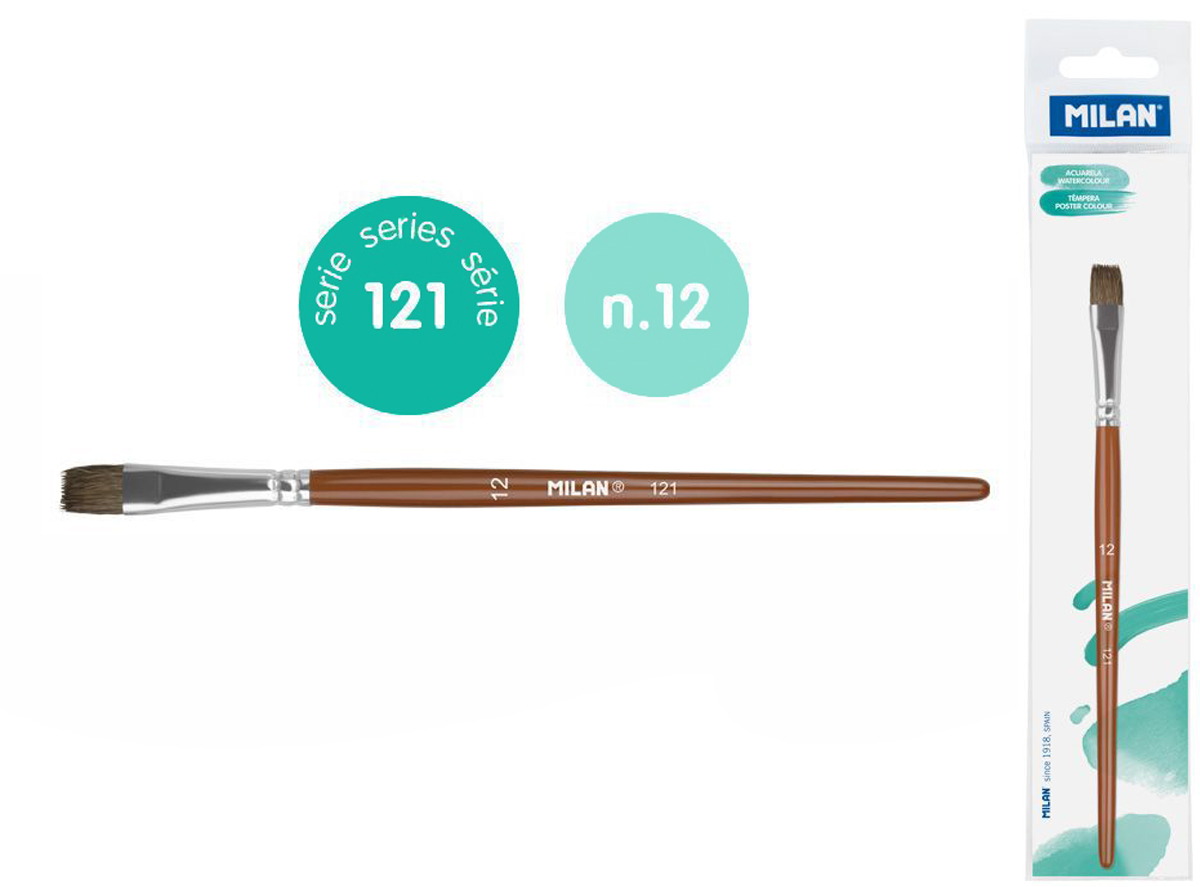 Opakowanie Pędzel płaski z włosia koziego seria 121 nr 12 Milan 1 szt. na blistrze