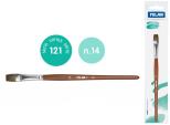Szkolny płaski pędzel serii 121 nr 14 z krótkim drewnianym trzonkiem.