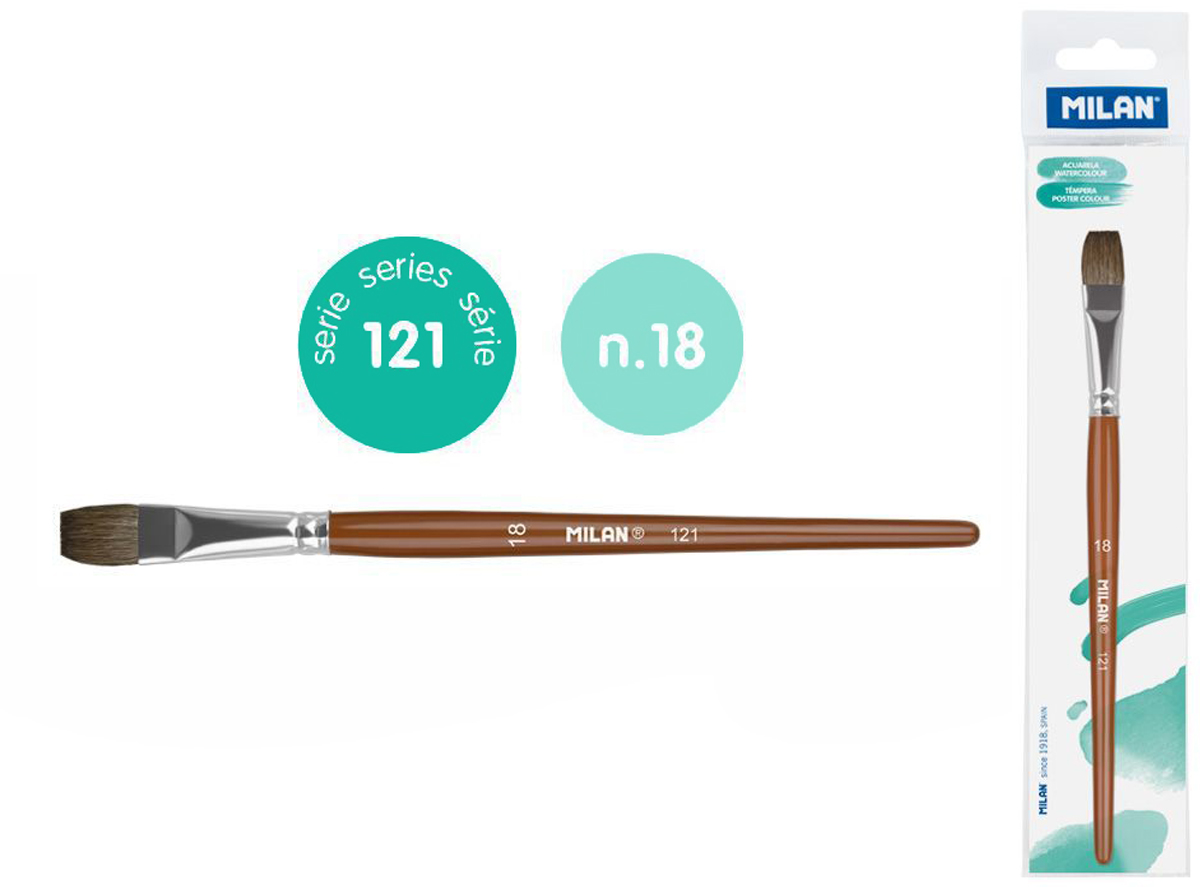 Opakowanie Pędzel płaski z włosia koziego seria 121 nr 18 Milan 1 szt. na blistrze